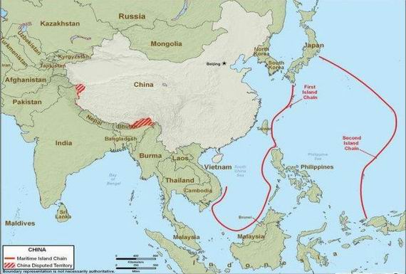 外媒制作的第一島鏈與第二島鏈示意圖,不代表本網(wǎng)觀點。