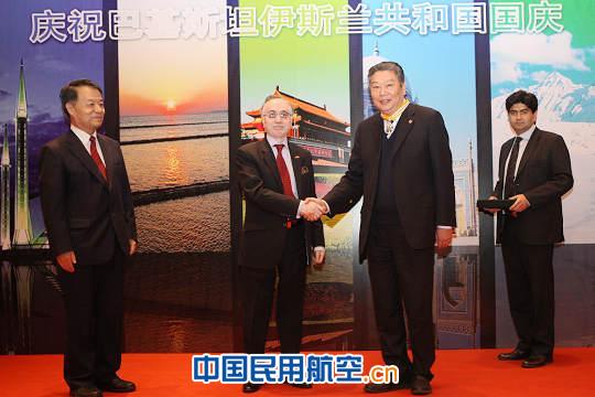 3月21日,在巴基斯坦國慶日來臨之際,巴基斯坦駐中國大使館在北京舉辦巴基斯坦國慶日招待會。巴基斯坦駐華大使馬蘇德哈立德代表巴基斯坦總統(tǒng)向7位為增進巴中關(guān)系而做出重要貢獻的中國公民授予獎?wù)。其中,中航工業(yè)董事長林左鳴被授予巴基斯坦“卓越之星”國家榮譽獎?wù),以表彰林左鳴董事長為推動中巴兩 國航空合作、推進巴基斯坦航空事業(yè)做出的貢獻。