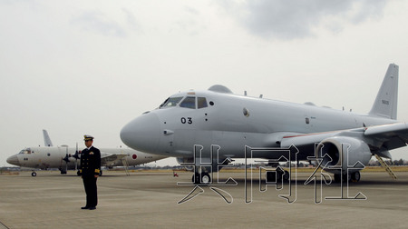 圖為3月29日下午抵達神奈川縣厚木基地的海上自衛(wèi)隊新型噴氣式反潛巡邏機“P-1”。左后方為現(xiàn)有的反潛巡邏機“P-3C”。