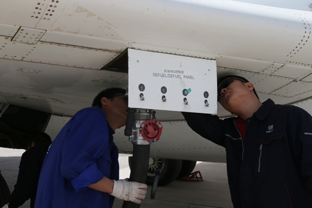 機(jī)務(wù)人員進(jìn)行航前準(zhǔn)備工作。