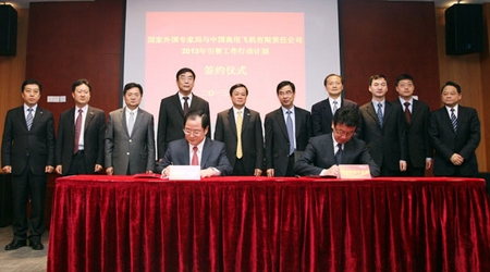 長(zhǎng)期以來,國(guó)家外專局對(duì)中國(guó)商飛公司的人才引進(jìn)工作高度重視。2009年,雙方簽訂了《引進(jìn)國(guó)外智力服務(wù)框架協(xié)議》。2012年,雙方簽訂了《2012年引智工作行動(dòng)計(jì)劃》,國(guó)家外專局還授予中國(guó)商飛公司全國(guó)首家“國(guó)家引進(jìn)國(guó)外智力示范單位”稱號(hào)。
