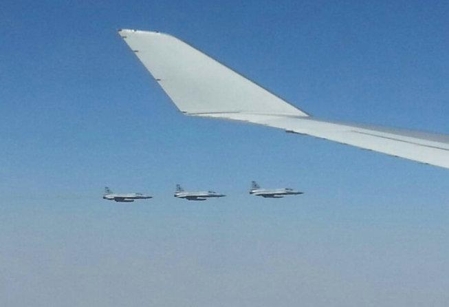 此次李克強(qiáng)總理的專機(jī)得到巴基斯坦空軍6架戰(zhàn)機(jī)的護(hù)航,而在國際上,如何護(hù)衛(wèi),派多少架飛機(jī)護(hù)衛(wèi)并無統(tǒng)一標(biāo)準(zhǔn)。2架、4架、6架、8架的情況都曾有過。