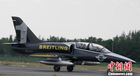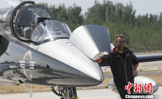 8月14日, 國(guó)際著名飛行表演隊(duì)——百年靈噴氣機(jī)表演隊(duì)正在克拉瑪依機(jī)場(chǎng)做暫短展示表演!≈芙帷z