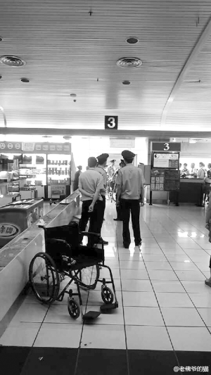 昨天,“@老佛爺?shù)呢垺痹谖⒉┥稀氨稀保耗暇┑焦鹆致糜蔚臍埣踩塑囉褕F(tuán)體今天在兩江機(jī)場(chǎng)過(guò)了安檢后卻被拒絕登機(jī),從早上8點(diǎn)等到下午3點(diǎn)。機(jī)場(chǎng)解釋因安全緣故殘疾人恐怕難以逃生,安排了其他乘客從另一通道登機(jī)。28名殘疾乘客逗留,有位阿姨聲稱被保安打傷,后由一位李經(jīng)理賠償?shù)狼。?jīng)過(guò)交涉,目前他們已經(jīng)登機(jī)。