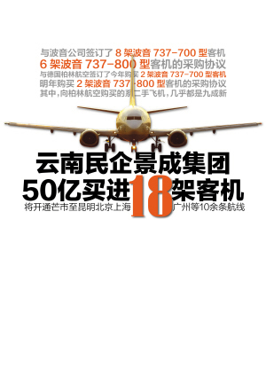 上周末,景成集團正在籌建的全資子公司——云南瑞麗航空公司與美國波音公司、德國柏林航空公司簽訂總計18架客機的采購協(xié)議。在大手筆購進飛機的背后,一個由30多人組成的籌備團隊在一月前悄然入駐昆明,并緊鑼密鼓地開展籌建工作。