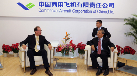中國經(jīng)濟網(wǎng)訊 2012年11月14日中國商飛公司副總經(jīng)理吳光輝在第九屆珠海航展期間會見了國際航空界友人,雙方就互相關(guān)心的問題深入交換了意見。