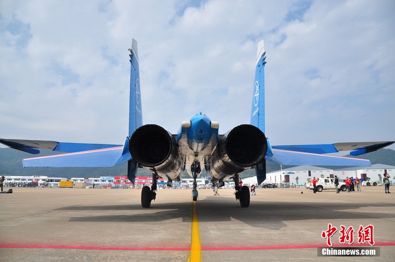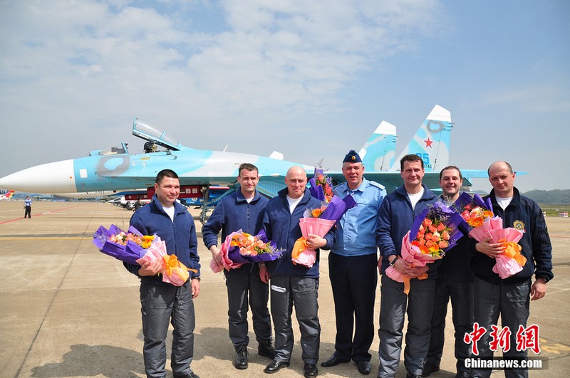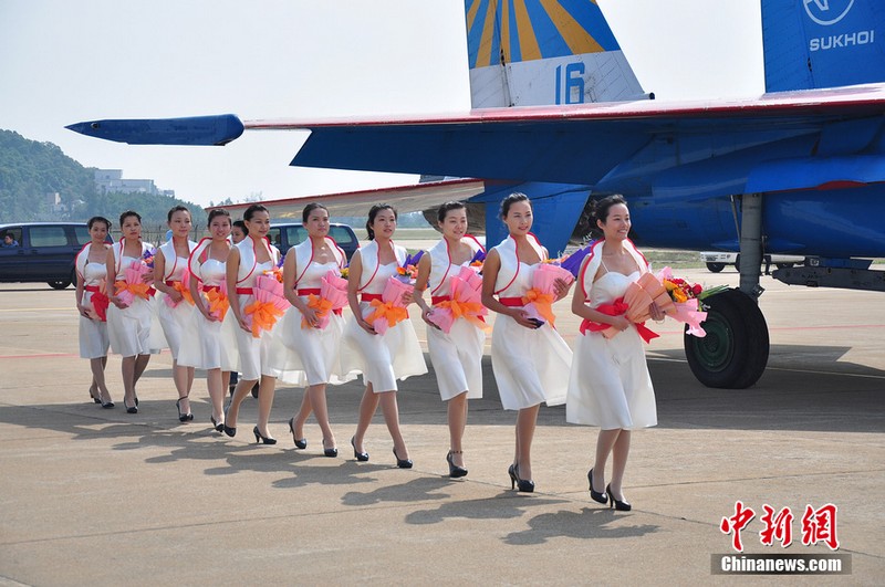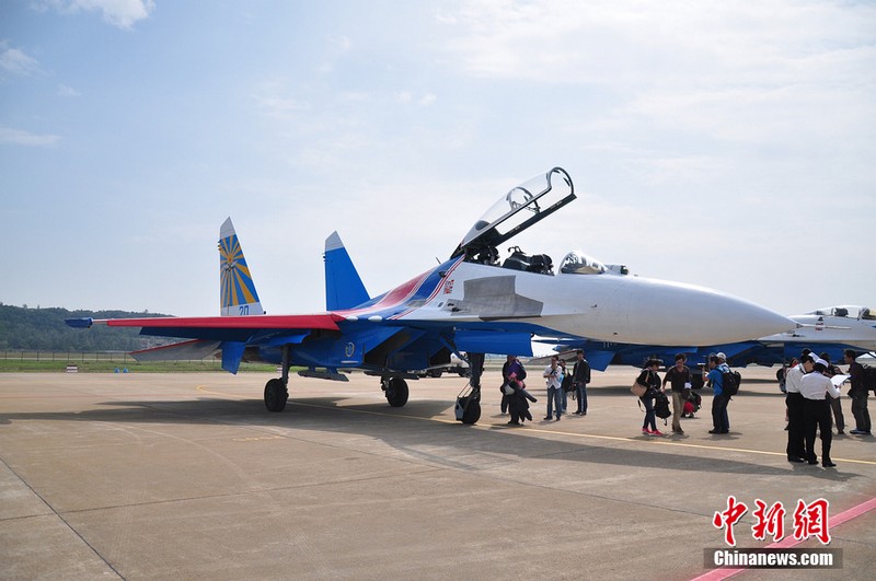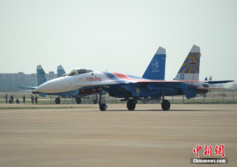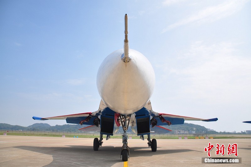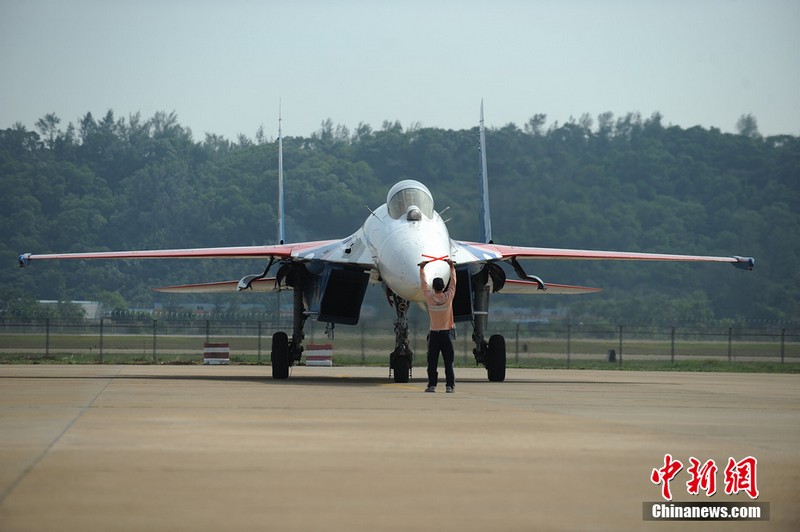 中新網(wǎng)珠海11月11日電(陳海峰) 11日中午12點25分,“俄羅斯勇士”特技飛行表演隊在闊別6年之后,再次來到珠海航展。俄羅斯這次一共派出5架蘇27來到珠海,將在航展上進(jìn)行飛行表演與靜態(tài)展示。