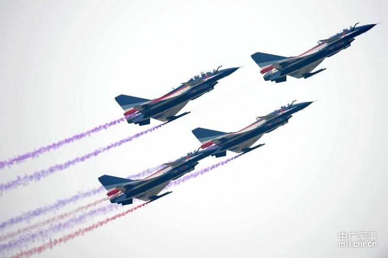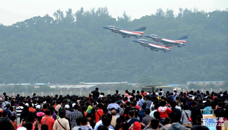 11月18日下午,珠海機(jī)場(chǎng)的上空烏云密布,天氣極為復(fù)雜多變?哲姲艘槐硌蓐(duì)在十萬(wàn)多觀眾的歡呼雀躍中,完成一系列高難動(dòng)作,為第九屆珠海航展圓滿(mǎn)謝幕。