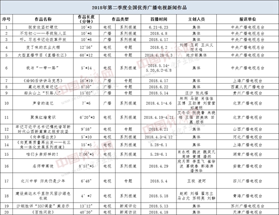 2018年二季度全國(guó)優(yōu)秀廣播電視新聞作品