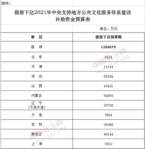 附件:提前下達(dá)2021年中央支持地方公共文化服務(wù)體系建設(shè)補(bǔ)助資金預(yù)算表