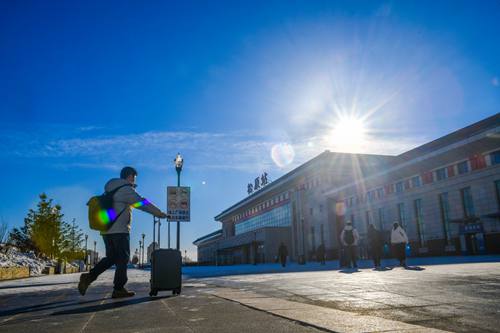 春運(yùn)首日,旅客在中國(guó)鐵路沈陽局集團(tuán)有限公司松原站踏上旅途。(中國(guó)鐵路沈陽局集團(tuán)有限公司 陳明/攝)