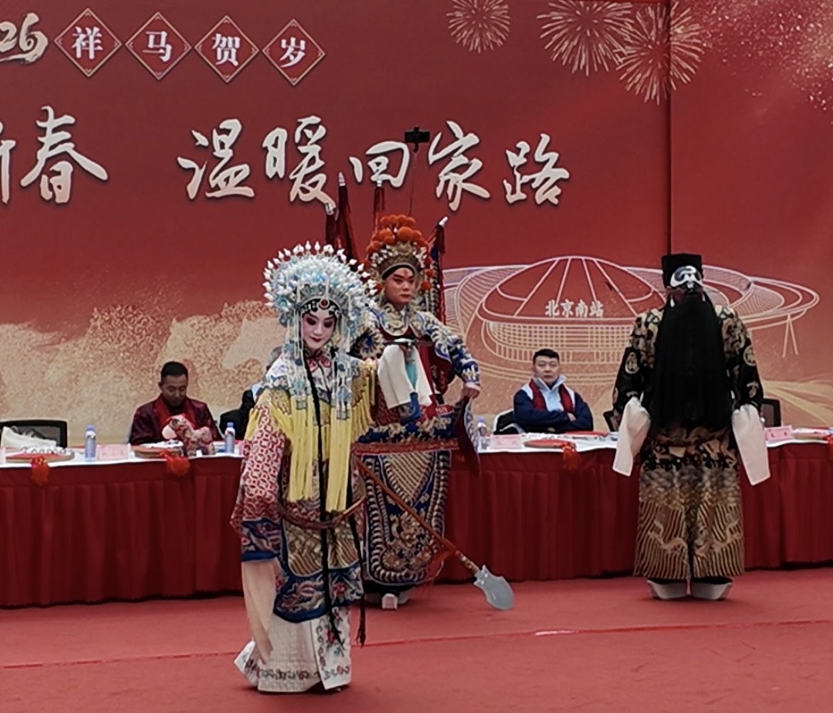 2月10日農(nóng)歷小年,北京南站候車(chē)大廳上演戲曲快閃。中國(guó)經(jīng)濟(jì)網(wǎng)記者鞠然/攝