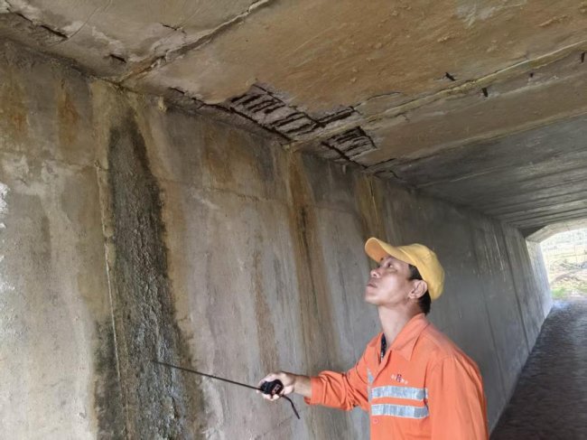 對(duì)涵洞露筋進(jìn)行測量