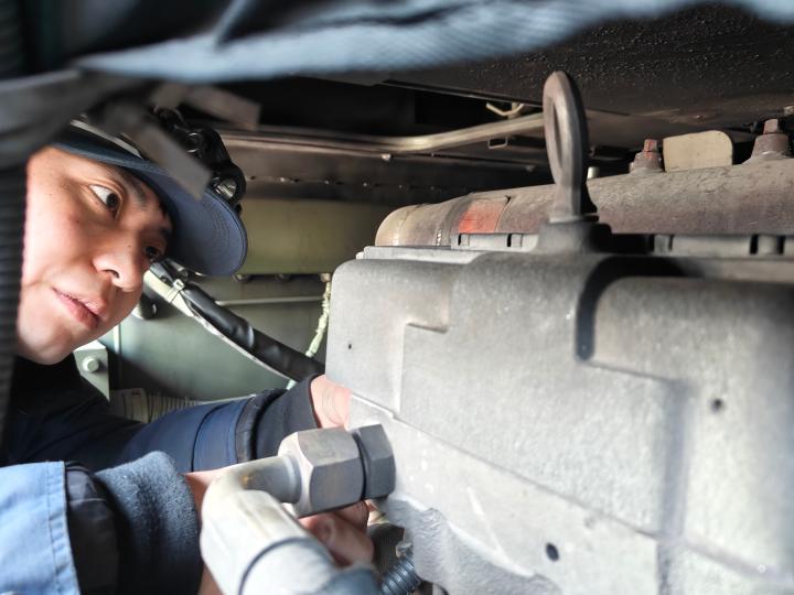 “工長(zhǎng),找到故障點(diǎn)位了!應(yīng)該是燃油泵系統(tǒng)出了問題,根據(jù)指示燈顯示,我判斷是燃油泵電源故障,必須立即更換!”一陣興奮的呼喊聲打破了現(xiàn)場(chǎng)的緊張,組員陳凱達(dá)呼出的白色哈氣凝成一大團(tuán)白霧。韓相忠立刻應(yīng)聲而動(dòng),組織人員調(diào)配備用件,陳凱達(dá)則俯身鉆進(jìn)狹小的縫隙中,不顧空間局促和車身的冰冷,快速更換電源。然而,更換完畢再次試驗(yàn)時(shí),情況卻不容樂觀,故障依然存在?!皶?huì)不會(huì)是線路斷路,或是燃油泵電機(jī)燒壞了?”韓相忠皺緊眉頭,目光緊鎖著機(jī)車控制面板,思索著每一種可能,聲音因嚴(yán)寒顯得有些發(fā)悶?!霸偃靸?nèi)取一臺(tái)燃油泵電機(jī)過來!”片刻思索后,韓相忠沉聲下達(dá)指令。副工長(zhǎng)楊明思不敢耽擱,立刻帶著組員何彬碩一路小跑趕往庫房,兩人抬著重達(dá)80斤的燃油泵電機(jī),馬不停蹄地奔回?fù)屝蕃F(xiàn)場(chǎng),雖然是寒冷的冬天,額頭上也滲出的密密汗珠。