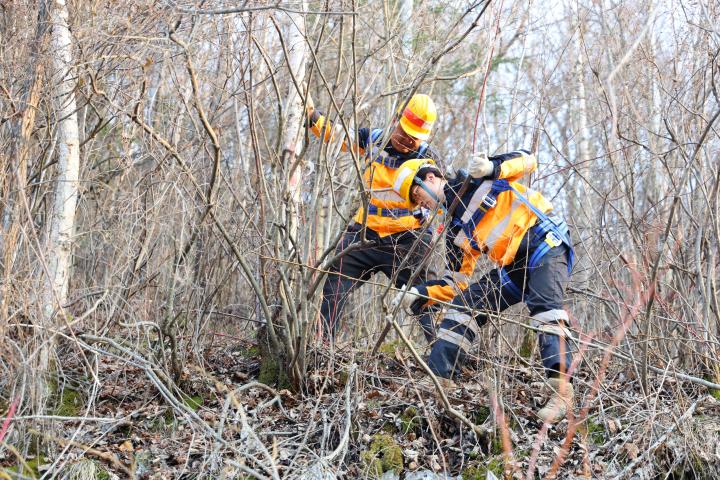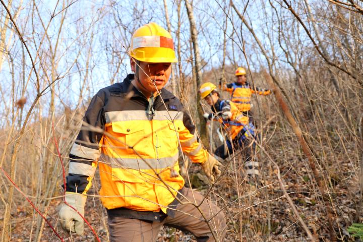 搜山掃石工作,是對意志與體能的雙重考驗(yàn):轄區(qū)內(nèi)山體陡峭,局部近乎垂直,腳下是濕滑的巖石與半融積雪,身旁是深達(dá)數(shù)十米的溝谷,攀爬難度堪比“登天梯”。可他們從未退縮,因?yàn)樗麄冎?,身后是普速鐵路承載的民生使命。
