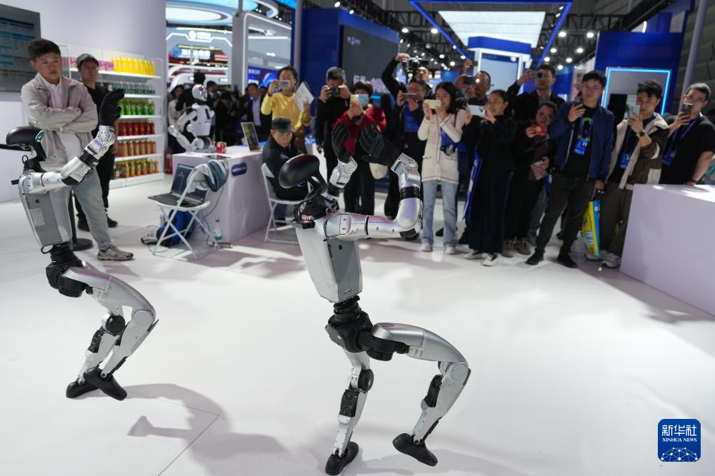 11月6日,觀眾在2025年世界互聯(lián)網(wǎng)大會“互聯(lián)網(wǎng)之光”博覽會現(xiàn)場觀摩人形機(jī)器人跳舞。新華社記者 黃宗治 攝