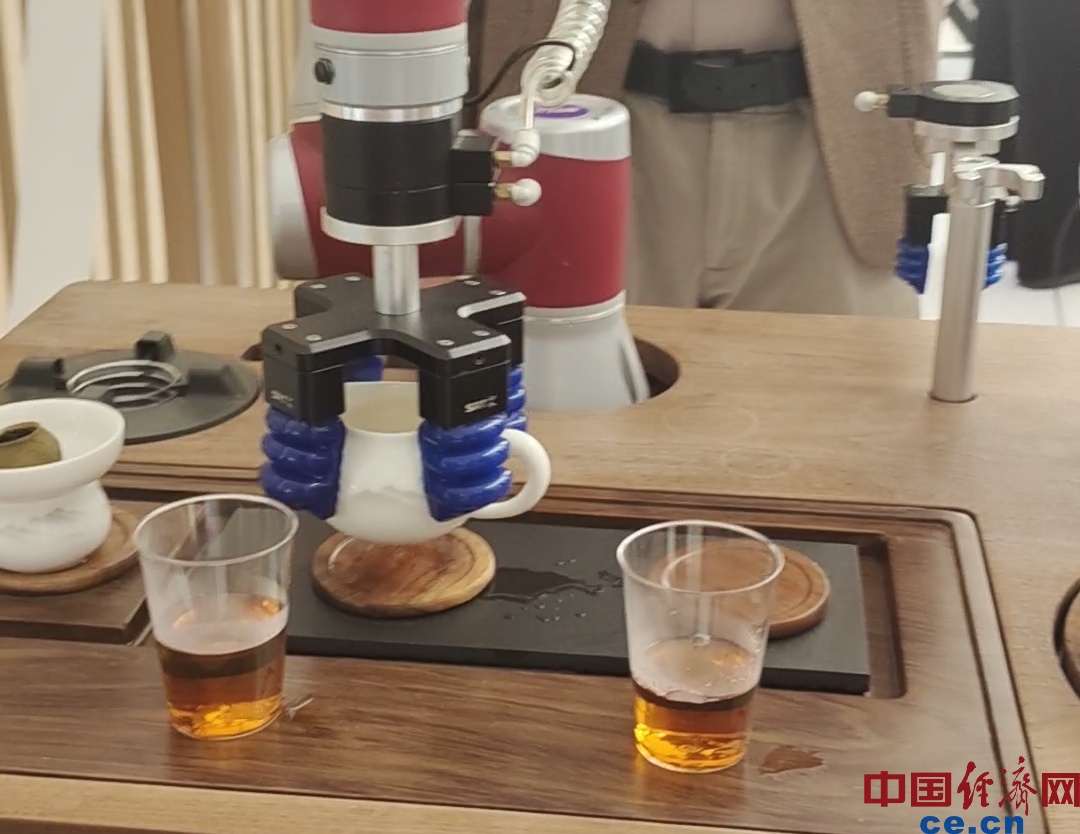 茶藝機器人可模擬煮茶大師手法,提供便捷、地道的用茶體驗。中國經(jīng)濟網(wǎng)記者 朱曉倩/攝