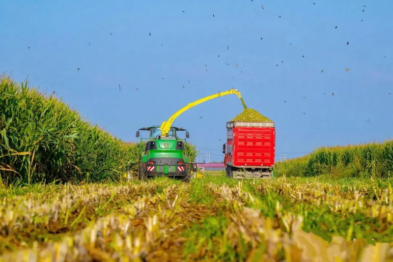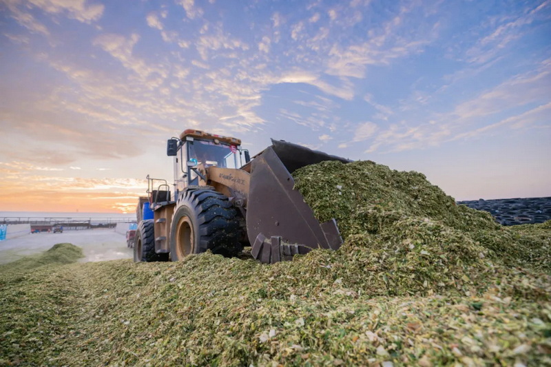 田間地頭,車輛滿載新收割的全株玉米,穿梭不絕;青貯窖邊,工人們正有序進行壓實與密封作業(yè),他們正在用速度與專業(yè),將新鮮的原料轉(zhuǎn)化為營養(yǎng)豐富的優(yōu)質(zhì)飼料,為奶牛備足一整年可口且能量充沛的“黃金口糧”。