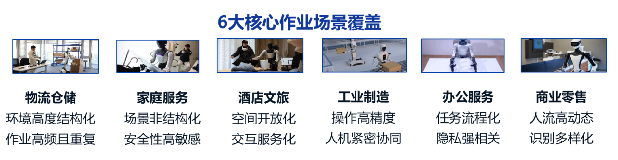 公司已成功建成全國首個虛實融合閉環(huán)的長三角(德清)具身智能數(shù)據(jù)采集訓(xùn)練場,構(gòu)建起覆蓋室內(nèi) 3000㎡、室外封閉場地 505 畝、全域開放場景 937 平方公里的三級訓(xùn)練體系。依托該訓(xùn)練場為平臺,已深度鏈接數(shù)十家真實終端場景,形成高價值、規(guī)?;膱鼍吧鷳B(tài)矩陣,全面覆蓋物流倉儲、家庭服務(wù)、酒店文旅、工業(yè)制造、辦公服務(wù)、商業(yè)零售6大核心場景。