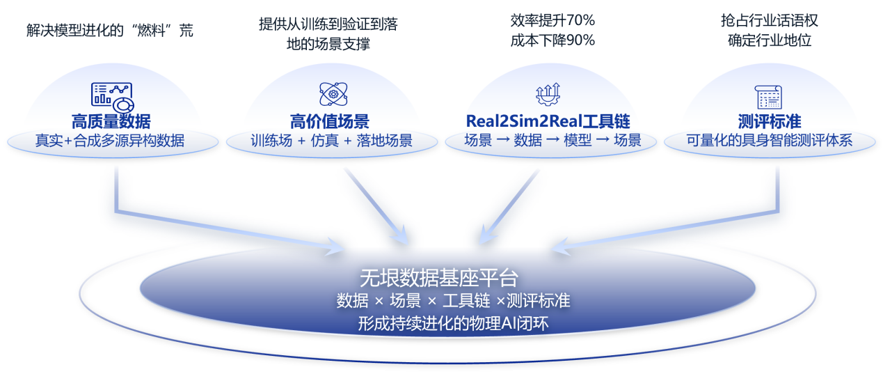 公司全棧自研“無垠”物理AI數(shù)據(jù)基座平臺,精準(zhǔn)破解行業(yè)“數(shù)據(jù)、場景、工具鏈、測評標(biāo)準(zhǔn)”四大痛點,構(gòu)建起行業(yè)領(lǐng)先的技術(shù)體系: