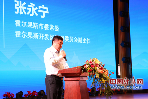 霍爾果斯市委常委、霍爾果斯開(kāi)發(fā)區(qū)管理委員會(huì)副主任、中哈霍爾果斯國(guó)際邊境合作中心副主任張永寧致辭。李濤/攝