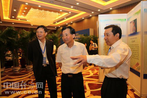 2013年全國食品安全宣傳周啟動儀式暨第五屆中國食品安全論壇6月17日在北京舉辦,今年主題為“社會共治 同心攜手維護(hù)食品安全”。圖為農(nóng)業(yè)部副部長陳曉華參觀食品安全“誠信守望者”展覽。中國經(jīng)濟(jì)網(wǎng) 王耀峰/攝