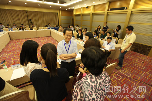 2013年全國食品安全宣傳周啟動儀式暨第五屆中國食品安全論壇6月17日在北京舉辦,今年主題為“社會共治 同心攜手維護(hù)食品安全”。圖為衛(wèi)生計生委食品安全標(biāo)準(zhǔn)與監(jiān)測評估司司長蘇志被采訪。中國經(jīng)濟(jì)網(wǎng) 王耀峰/攝